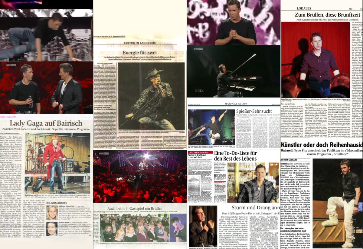 Gastauftritte als Schauspieler und Kabarettist im ARD, ZDF, Bayerischer, SWR, Rundfunk, – plus regelmäßige Presseberichte in renommierten Printmedien wie Süddeutsche Zeitung, Merkur und regionalen Medien.