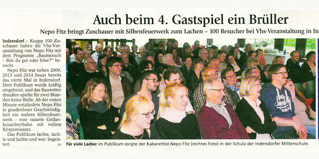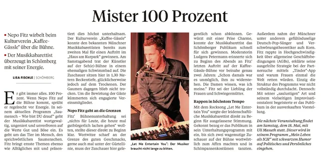“Der Auftritt von Nepo Fitz auf unserer Campus Bühne war richtig gut! Lustig - Witzig - Spritzig - super Musik - super Gesang. Das Publikum war begeistert. Gerne wieder!"