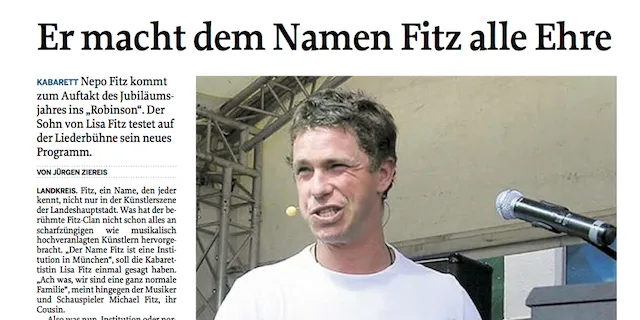 Die Münchner Künstlerdynastie Fitz steht seit über 100 Jahren für Live-Entertainment – von Schauspiel über Kabarett bis zur modernen Corporate-Show. Über 800 Live-Veranstaltungen seit 2008, Gastauftritte bei ARD, ZDF, SWR Bayerischer Rundfunk u.a.